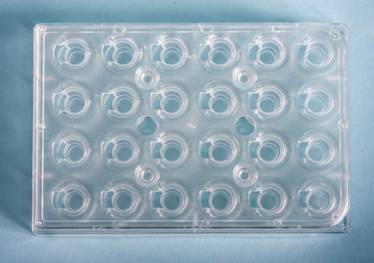 This is a Corning #3378 24-well plate that may be used with the EVA-EL-03-02 or the EVM-EL-03-03-04. The Corning Falcon 24-well plate is virtually identical to this one, and it may be used with the EVM-EL-03-03-03. | This is a Corning Falcon 96-well plate that may be used with the EVA-EL-03-01. | This is a Millipore Multiscreen CaCo2 that may be used with the EVA-EL-03-01 or the EVM-EL-03-03-02. | This is a Corning 3391 HTS Traswell 96 plate that may be used with the EVA-EL-03-01 or the EVM-EL-03-03-05. |